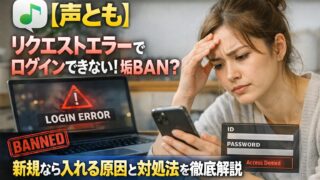 インターネット・通信 【声とも】リクエストエラーでログインできない!垢BAN?新規なら入れる原因と対処法を徹底解説