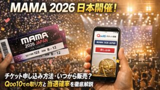 MAMA 2026のチケットを確実に取るための攻略ガイド。Qoo10での申し込み方法、販売時期の予想、FC入会の要否、当選確率を上げるコツ、本人確認の注意点まで、最新情報を徹底解説します。