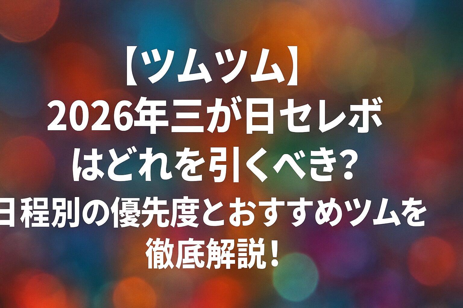 三が日セレボは1年で最も盛り上がるガチャです。ぜひこの記事を参考に、後悔のないガチャ計画を立ててツムツムを楽しみましょう!幸運を祈ります!