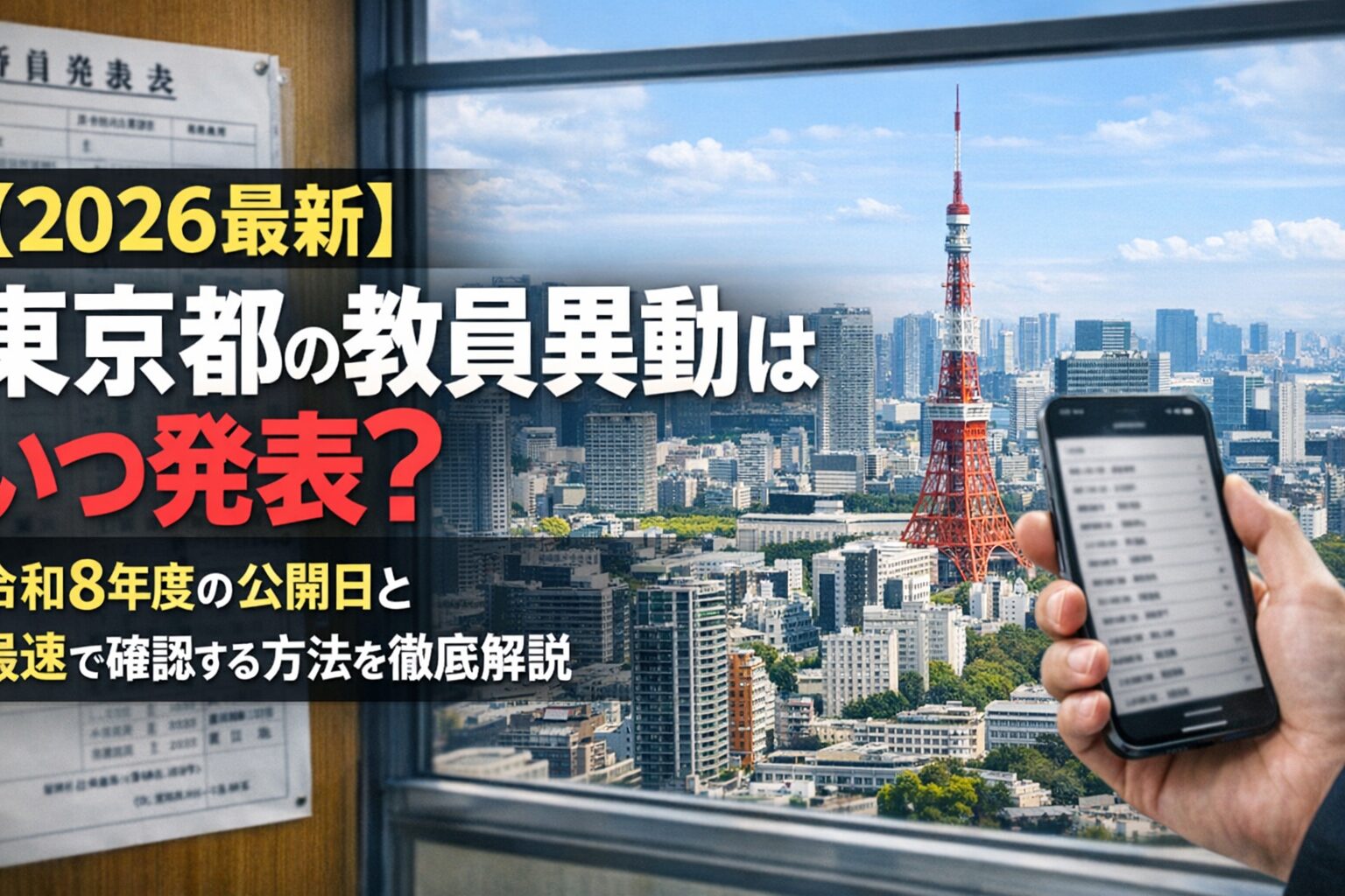 特に東京都は教員数が多く、毎年1万人規模の人事異動が行われます。本記事では、令和8年度(2026年度)の東京都教員異動がいつ、どのように発表されるのか、インターネットで最速で確認する方法とあわせて詳しく解説します。