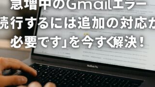 インターネット・通信 急増中のGmailエラー「続行するには追加の対応が必要です」を今すぐ解決! 「続行するには追加の対応が必要です」はセキュリティ警告です。この記事では、このGmailエラーの原因と影響を詳しく解説。2段階認証、デバイス管理、アプリパスワードなど、再発を防ぎ、アカウントを安全に保つための予防策も網羅。 インターネット・通信