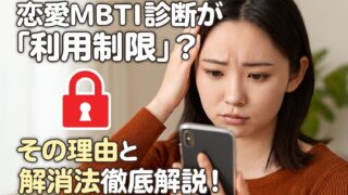 インターネット・通信 恋愛MBTI診断が「利用制限」?その理由と解消法徹底解説! 恋愛MBTI診断で「利用制限」と表示される原因と解消法を徹底解説。キャッシュ、ネットワーク、アプリの問題から解決策まで網羅しています。診断結果を恋愛や仕事に活かすヒントも紹介。 インターネット・通信